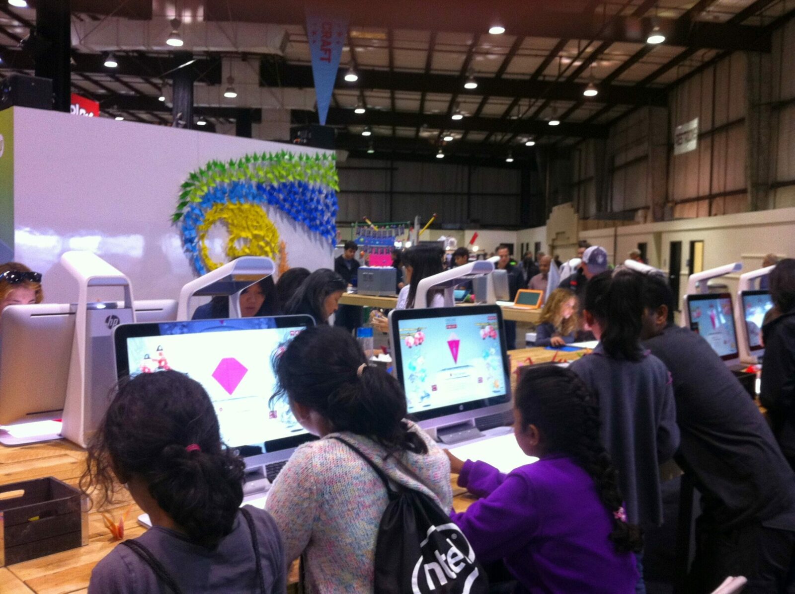 Beh, per prima cosa è più piccola, ma non meno partecipata, forse più giocosa, con molti stand dedicati a prove da superare, più “fiera”, ma con una grandissima attenzione al software ed all’intelligenza artificiale. Gli stand sono presidiati da famiglie intere di Makers e le Cos Player e l’area dedicata a progetti ispirati da Manga ed Anime, qui fanno parte del paesaggio.”