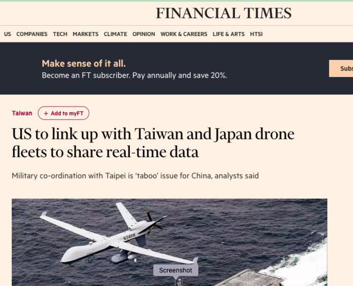 Universinet.it – Non capita spesso che il Financial Times sia smentito con un tweet.Il Ministero della Difesa di Taiwan ha negato recenti rapporti che indicavano che il paese stesse progettando di condividere dati in tempo reale da droni da ricognizione navale con gli Stati Uniti e il Giappone. “Il ministero non è stato ancora informato di tali piani”, ha detto in un tweet, aggiungendo che è importante verificare le fonti di informazione per evitare di confondere il pubblico.