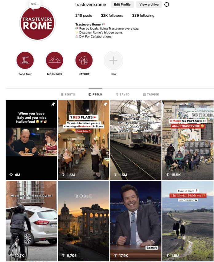 Con la sua combinazione unica di autenticità, stile e passione, la pagina rappresenta un punto di incontro tra tradizione e innovazione. Per le aziende che desiderano connettersi con un pubblico giovane, sofisticato e profondamente legato alla cultura romana, @Trastevere.Rome è un partner perfetto.