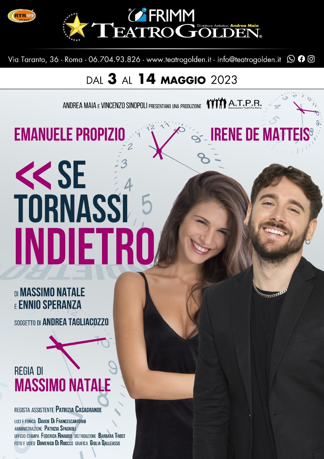 Al Teatro Golden, tale desiderio diventa il fulcro dello spettacolo “Se tornassi indietro”, in scena dal 3 al 14 maggio. Questa emozionante rappresentazione è stata ideata da Massimo Natale ed Ennio Speranza, prodotta da Atpr Ass Teatri per Roma, e vede come protagonisti due talenti emergenti: Emanuele Propizio e Irene de Matteis.