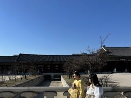 L’Hotel Hamilton è un albergone di lusso, squadrato all’americana, uguale a tanti visti a Las Vegas o Dubai, con piscina e facciata piena di schermi LED che la sera lo fanno assomigliare a un perpetuo albero di Natale luminoso. I Coreani sono un popolo romantico, i fidanzatini camminano sempre mano nella mano e spesso si vestono abbinati. Esistono anche appositi negozi per acquistare abbigliamenti abbinati e quest’anno in migliaia si erano mascherati con costumi da coppie.